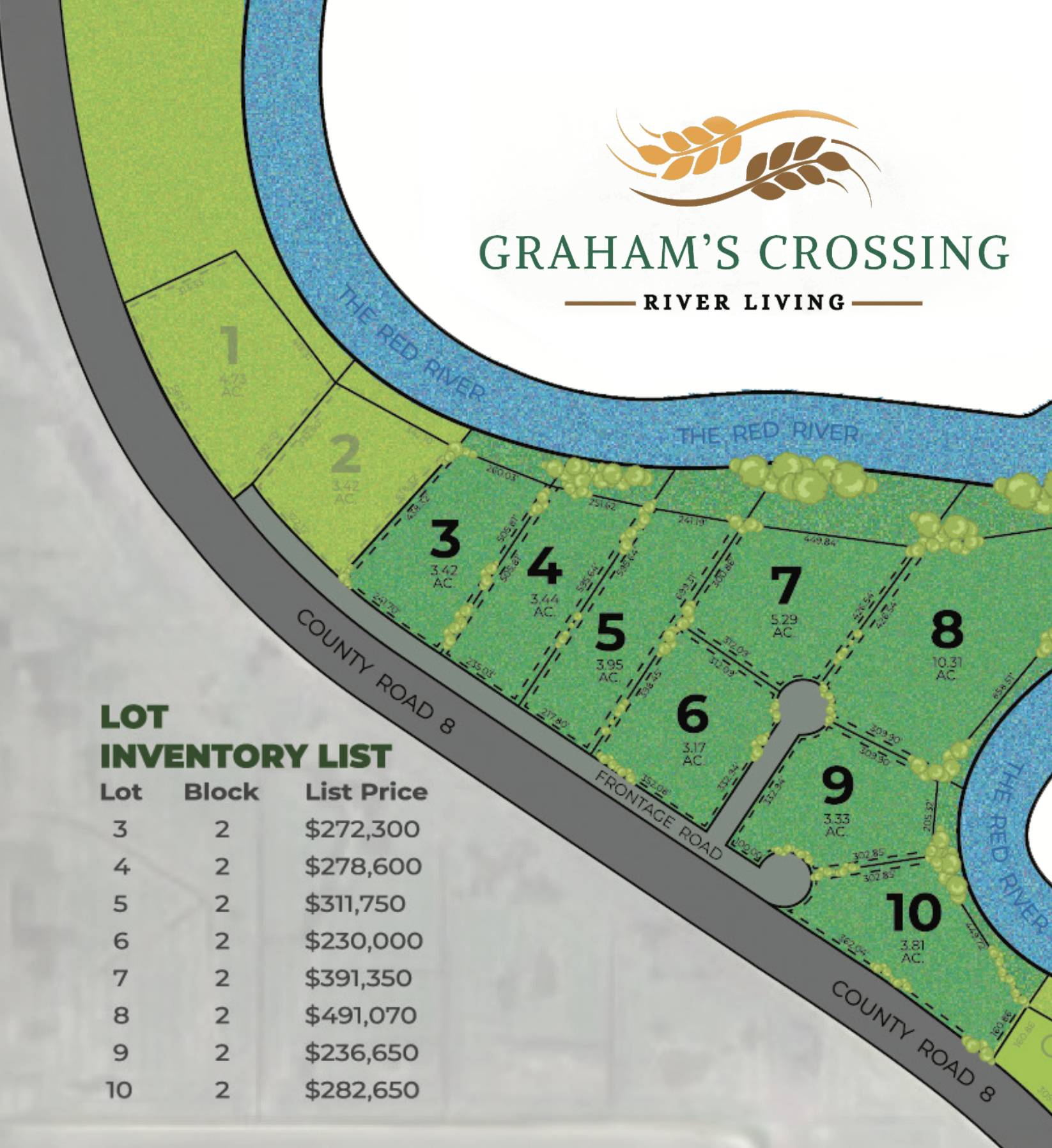 Just 35 minutes south of Fargo, the Red River has forged an untouched prairie paradise at Graham's Crossing, a collection of eight premium acreage riverfront lots ranging from three to 10 acres. Before selecting your executive lot in the quiet countryside, we invite you to meet Realtor Nancy Kelly and the fourth-generation farmers who have cultivated and cared for every inch of the development's fertile soil. Graham's Crossing welcomes you home to rare river living, where the only thing rushing is the Red.
