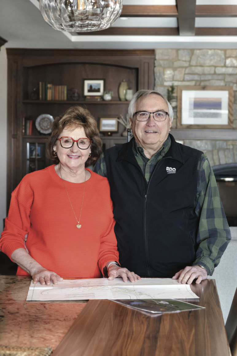 Jolene and Kelly chose the northernmost plot of land for the 2021 construction of their home, which was designed by architect Ben Nelson of Blaine, MN. The home was built by the now-retired Schmit Brothers Construction, with cabinetry by A+A Home Designs (Fairmount, ND), and interior design by Design Direction (Fargo). Their riverside home reflects their love of the land and family, crafted to accommodate visits from their three grown children and eight grandchildren.
